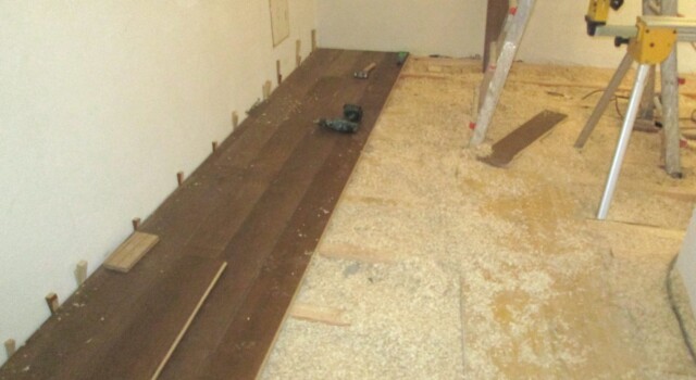 In jedem Fall besteht der Fußbodenaufbau aus einer Massivholzbeplankung auf einer Holzleisten-Unterkonstruktion, der Hohlraum wird mit Holzhäcksel oder Zellulosedämmung gefüllt. Im Fußbodenaufbau befinden sich auch die nötigen Verteilungsstränge der Hausinstallation.